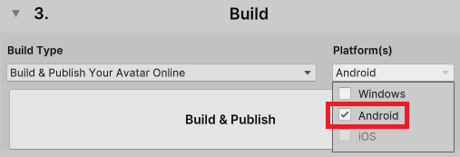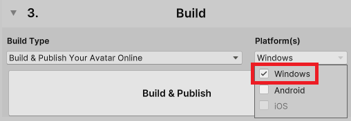 「Build & Publish Your Avatar Online」を選択します。