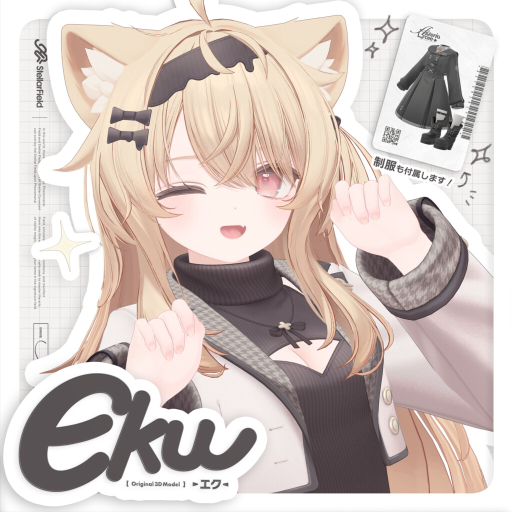 オリジナル3Dモデル「エク」は、10日10日よりBOOTHショップ「Sep-neko-ya」にて通常価格はPC版6000円、Mobile版4000円、PC版 & Mobile版セット8500円で発売されます。