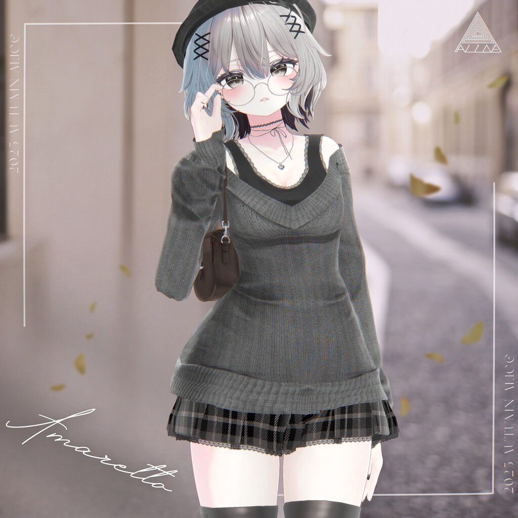 「ALICE」から販売されている「Amaretto」は、「シンプルながらも暖かさや優しさのある質感のあるニットが特徴的な衣装です。 メガネやベレー帽もセットになっており、これ一着でトータルコーディネートが完成する使い勝手の良いアイテムとなっています。