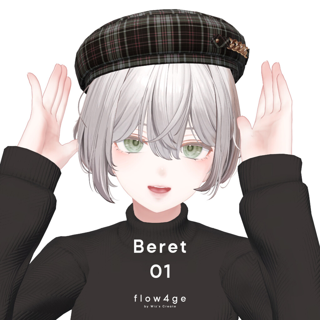「flow4ge」から販売されている「Beret 01」は、シンプルで様々なコーディネートに合うベレー帽です。 カラーバリエーションが25種類あり、BlendShapeでも調整が可能なため、髪型やアバター問わず、着こなしに合わせることが出来るアイテムです。