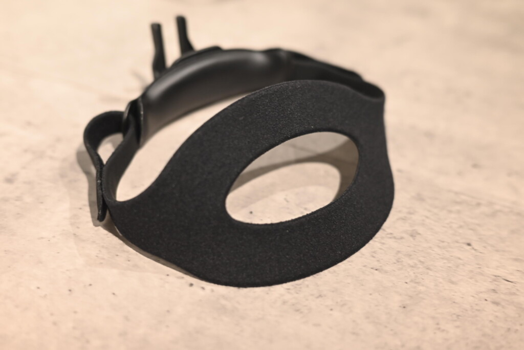 「MeganeX」シリーズのこだわりのひとつとして、装着方法があります。今回「MeganeX MarkⅡ」に同梱されているソフトストラップは、頭部後方がスッキリ。このまま横になって寝ても、まったく問題ない形状になっています。