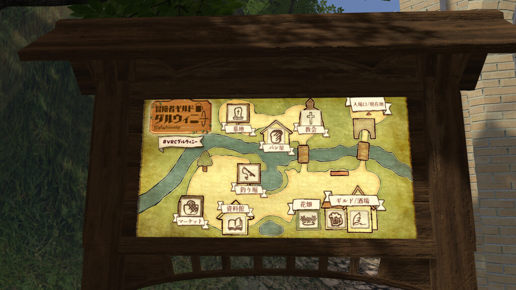「冒険者ギルド ダルウィニー」は、ファンタジー世界にあるような冒険者のギルドをモチーフとしており、実際にクエストを受けて指定のワールドへ行きクエストを通じて冒険することで、VRChatの遊び方を覚えていくスタイルのワールドです。