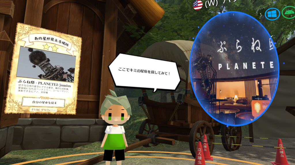 今回受けたクエストの内容は「自分の星座をさがして!」というものでした。現地に行くとプラネタリウムがうつくしいチルワールド「ぷらね邸」にたどり着きます。