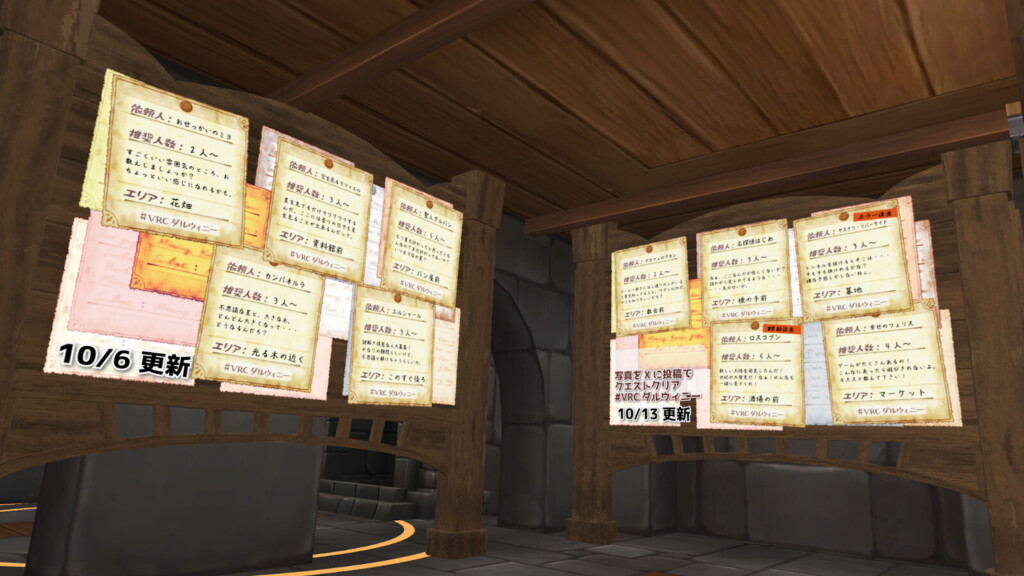 チルワールド系は人としゃべったり、ゆっくりするのがワールドの目的なんで、それ以外の場所でクエストを作るのがちょっと大変です」