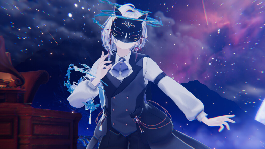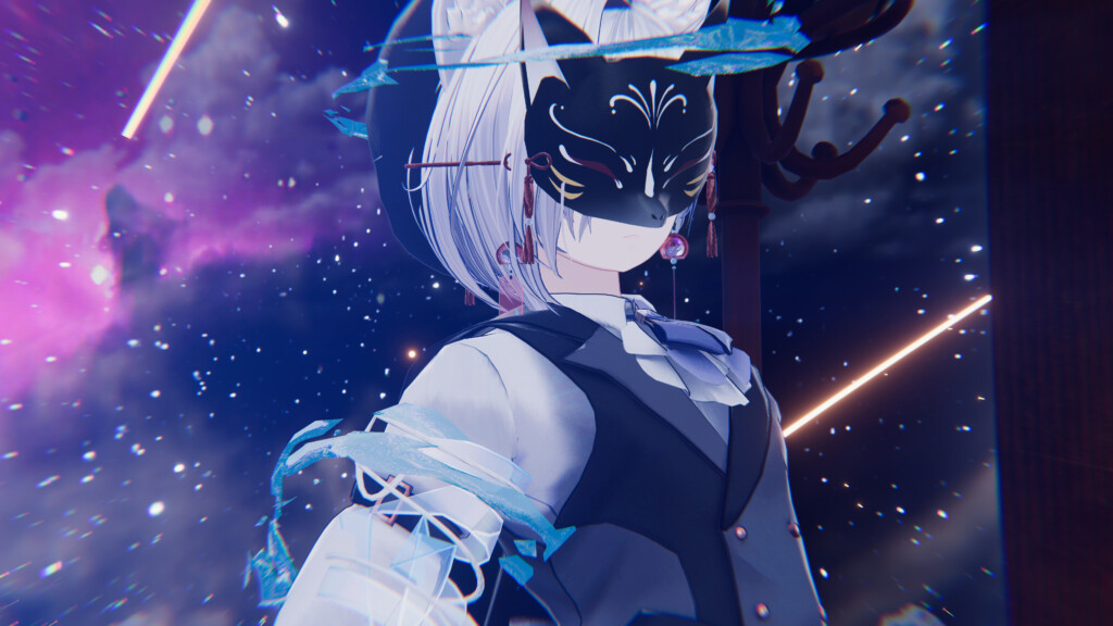 「狐面幻燈 – 夏夜イメージアイテムセット」は、狐面・巻札・風鈴ピアスがセットになった、夏夜の空気を纏うアイテム。涼しげな水のエフェクトと、どこか妖しげな雰囲気が重なり、人外系アレンジや、妖艶で惹きつける改変にぴったりです。