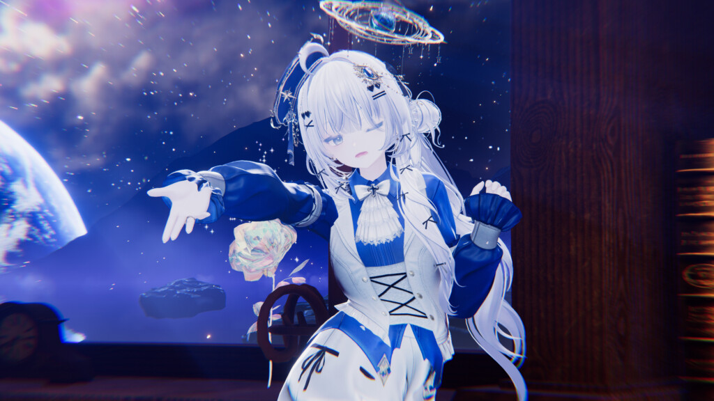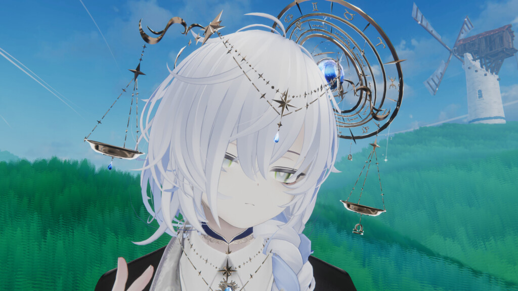 実際に着用してみると、ふんわりとしたリボンやフリルがとても愛らしく、女の子らしい可愛さを素直に表現できるデザイン。清楚さも感じられるため、おとめ座らしい優しさや柔らかな雰囲気をアピールできます。少年・男性アバターに合わせて“ギャップ萌え”を狙うのもアリ。