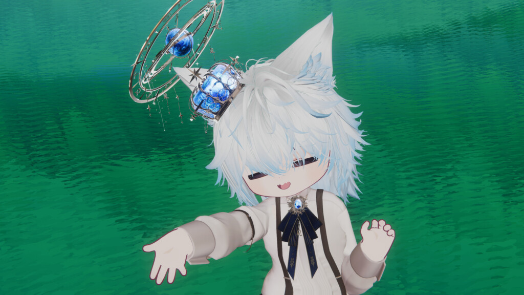 実際に身につけてみると、王冠とリボンタイがシンプルな衣装にも落ち着きを与え、洗練された雰囲気に。大人びたアバターに合わせて格好良さを高めても、小さめアバターと組み合わせて可愛さを強調しても映える万能なアイテムです。