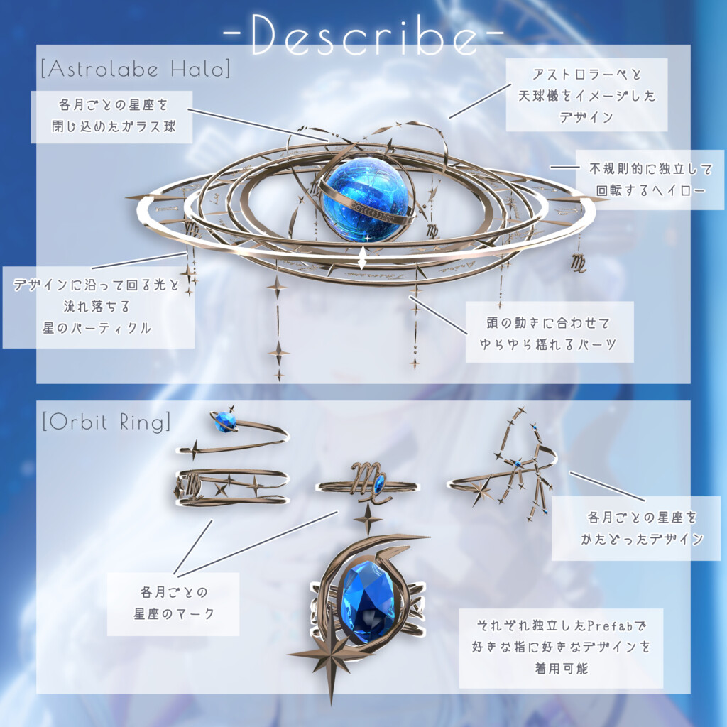ヘイローや指輪には、おとめ座を象徴するモチーフや♍マークがあしらわれ、星座アイテムとしても視認性が高く、自分の誕生日や星座をさりげなくアピールしたい人にもぴったり。