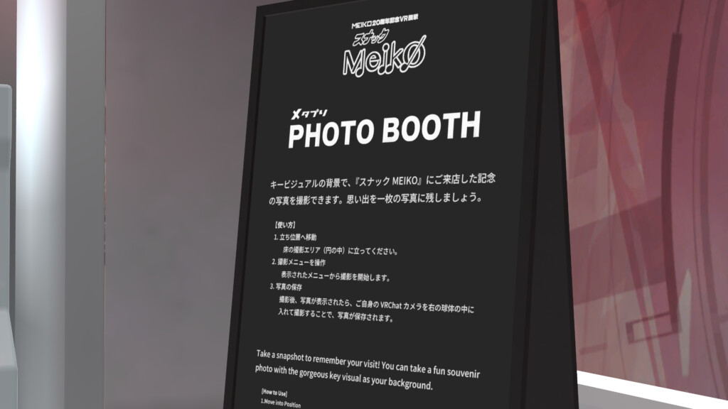 更に、「Anique Museum」といえばおなじみのフォトブースも! 今回は「スナックMEIKO」の描き降ろしの世界観に入ることが出来るブースになっています。 しっかりと記念写真を撮って残しておきましょう。