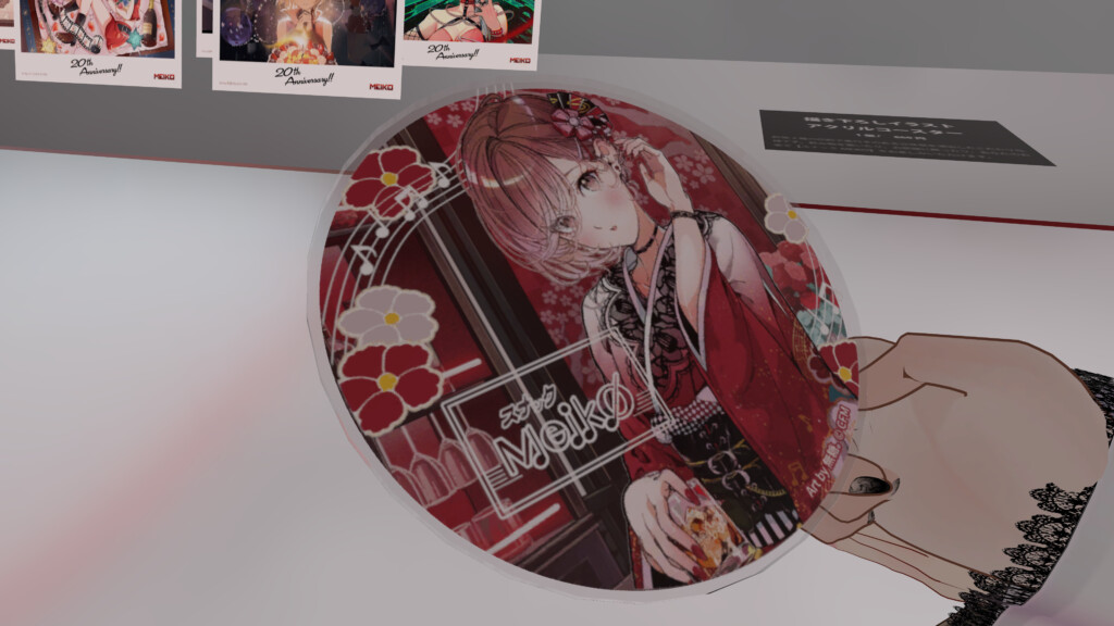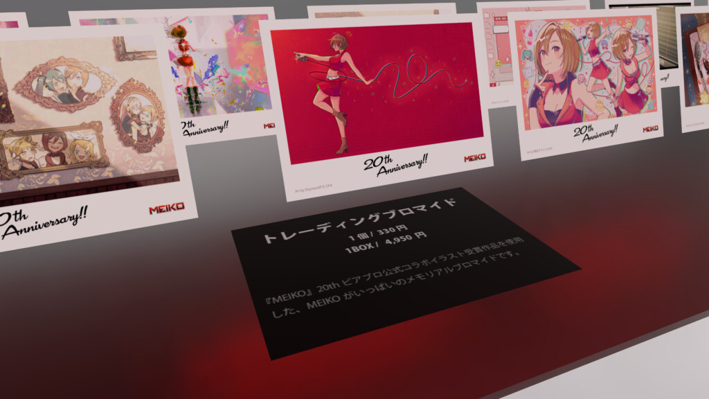 トレーディングブロマイドやコースターなど20周年を記念したグッズがずらりと並び、ついつい「一個購入してみようかな」となってしまいます。 筆者的おすすめはロックグラス、MEIKOをイメージしたお酒を注ぎ、静かに祝杯をあげる夜を過ごすのも良さそうです。