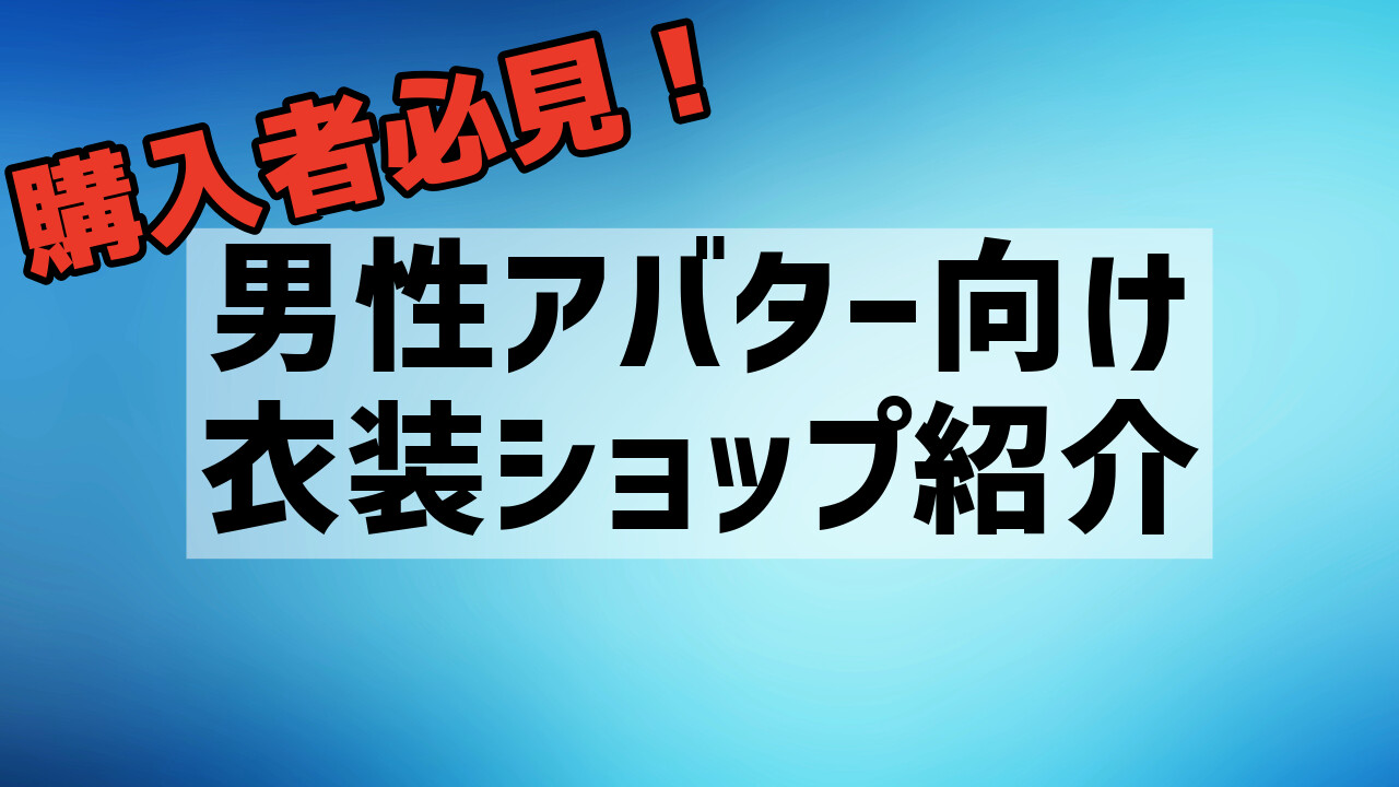 その中でも、今回は男性アバターを中心に取り扱っているショップを紹介します。もちろんデフォルトの衣装や既に持っている衣装を使う人もいると思いますが、男性アバターをはじめて買ってみた人など、これからチャレンジする人にオススメしたいものを筆者が厳選。