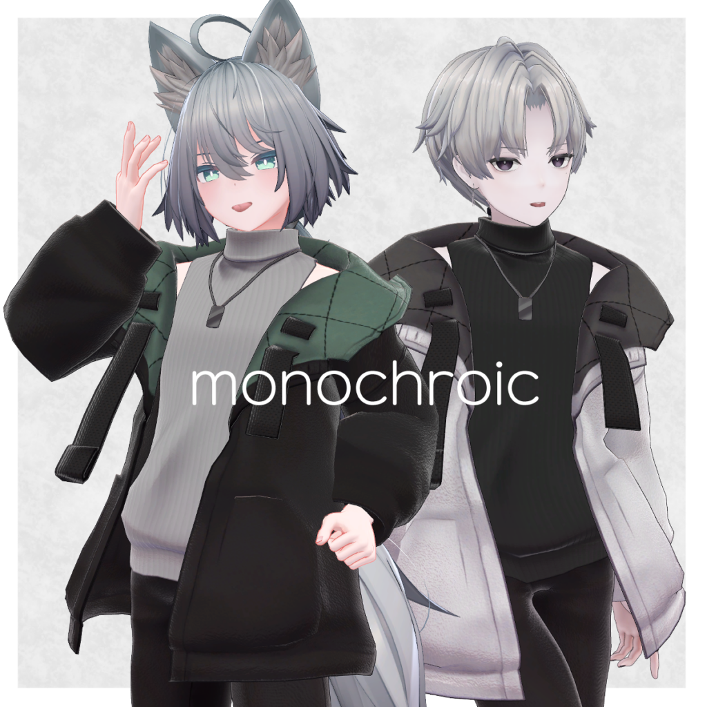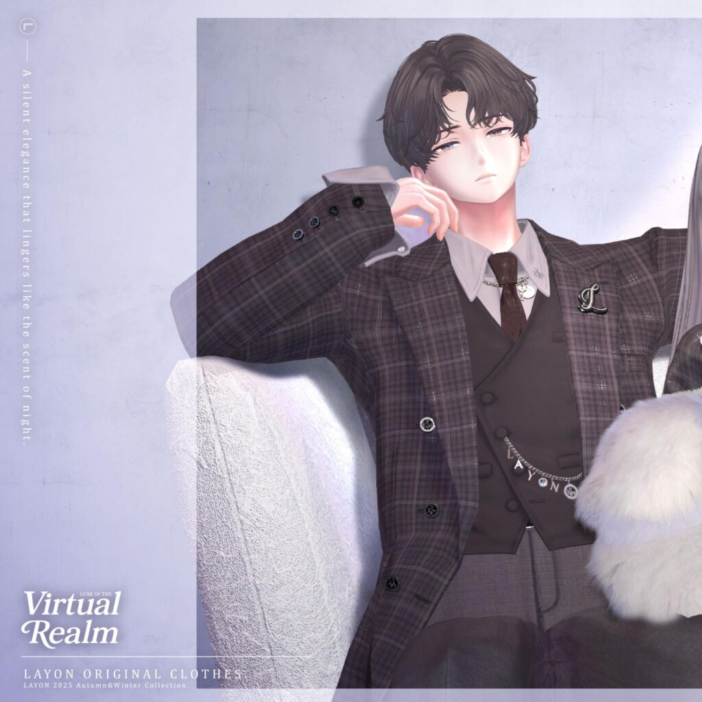 LAYONは着ているだけでなんだか品格のある雰囲気になるショップ。生地や細部にもこだわりのあるので、近くまで見られることが多いVRChatの環境にもオススメしたい作りをしています。ペアコーデを中心にしつつ、男女兼用アイテムがあるので女性アバター中心のユーザーもチェック。