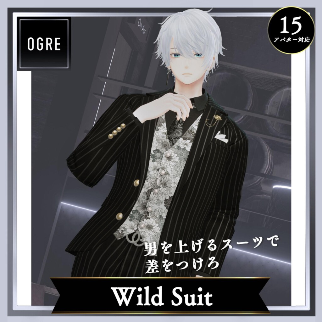 OGREは、四肢の長い青年に映えるリアル寄りの作りが中心のショップ。ショップの代表とも言える「OGRE_Wild Suit」は男のスーツの定番とも言える商品です。定番だと被ってしまわないかと思うかもですが、この商品はジャケットとインナーの着こなしや柄変えでの組み合わせが豊富なので心配なし。