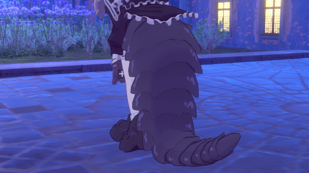 シスター部分を減らしてジャージスタイルで着ることも可能で、カジュアルな雰囲気が強調されます。どこか気だるげな印象が加わり、また違った魅力が楽しめます。さらに、尻尾のオンオフによって後ろのベールが下がるなど、細かなギミックも凝られています。
