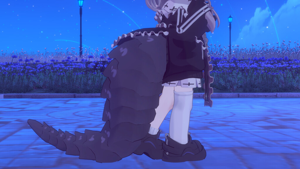 そして最大の特徴が、大きなトカゲの尻尾です。デフォルメながら鱗の質感もしっかりと表現されており、かわいらしさの中に異質さも感じられます。個性豊かなまめふれんずの中でも、強く存在感を放つポイントでしょう。