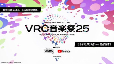 VRC音楽祭公式Xにて「VRC音楽祭2025」の開催が発表されました。開催日は12月27日(土)。今年も総勢16組の出演者による、年末を彩る音楽の祭典が実施されます。