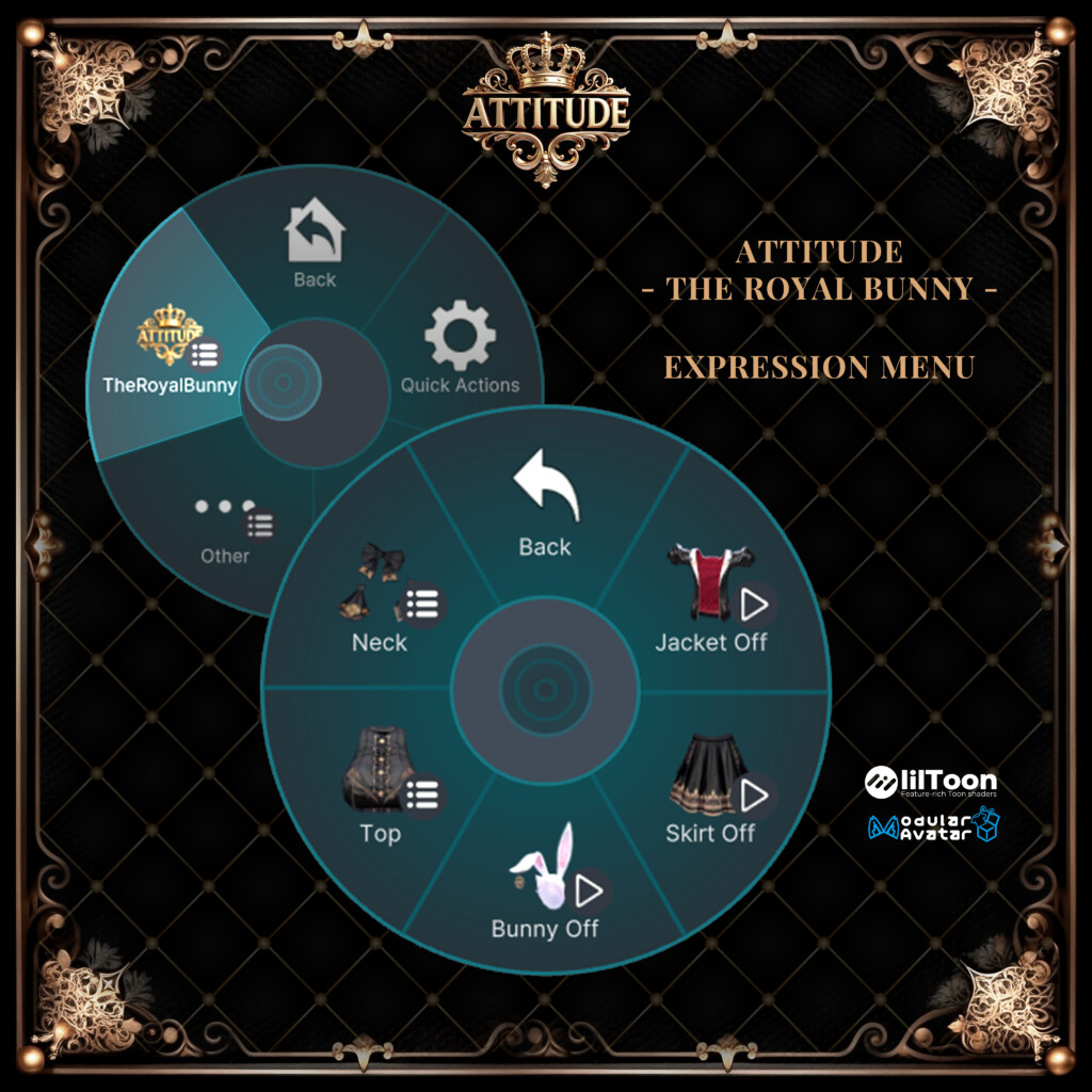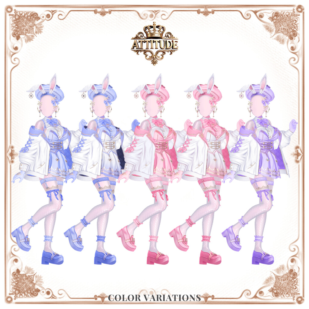 『ATTITUDE : The Royal Bunny』は、ゴシックでクールにも、ポップでかわいくも着こなせる万能な衣装。豊かな装飾と組み合わせの幅が魅力で、多くのユーザーにとって改変して楽しい一着になりそうです。オシャレな衣装が欲しいと思っているユーザーは、一度検討してみてはいかがでしょうか。