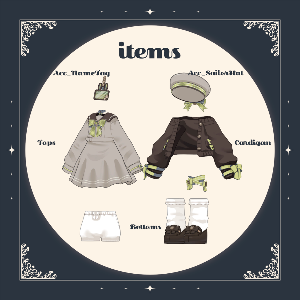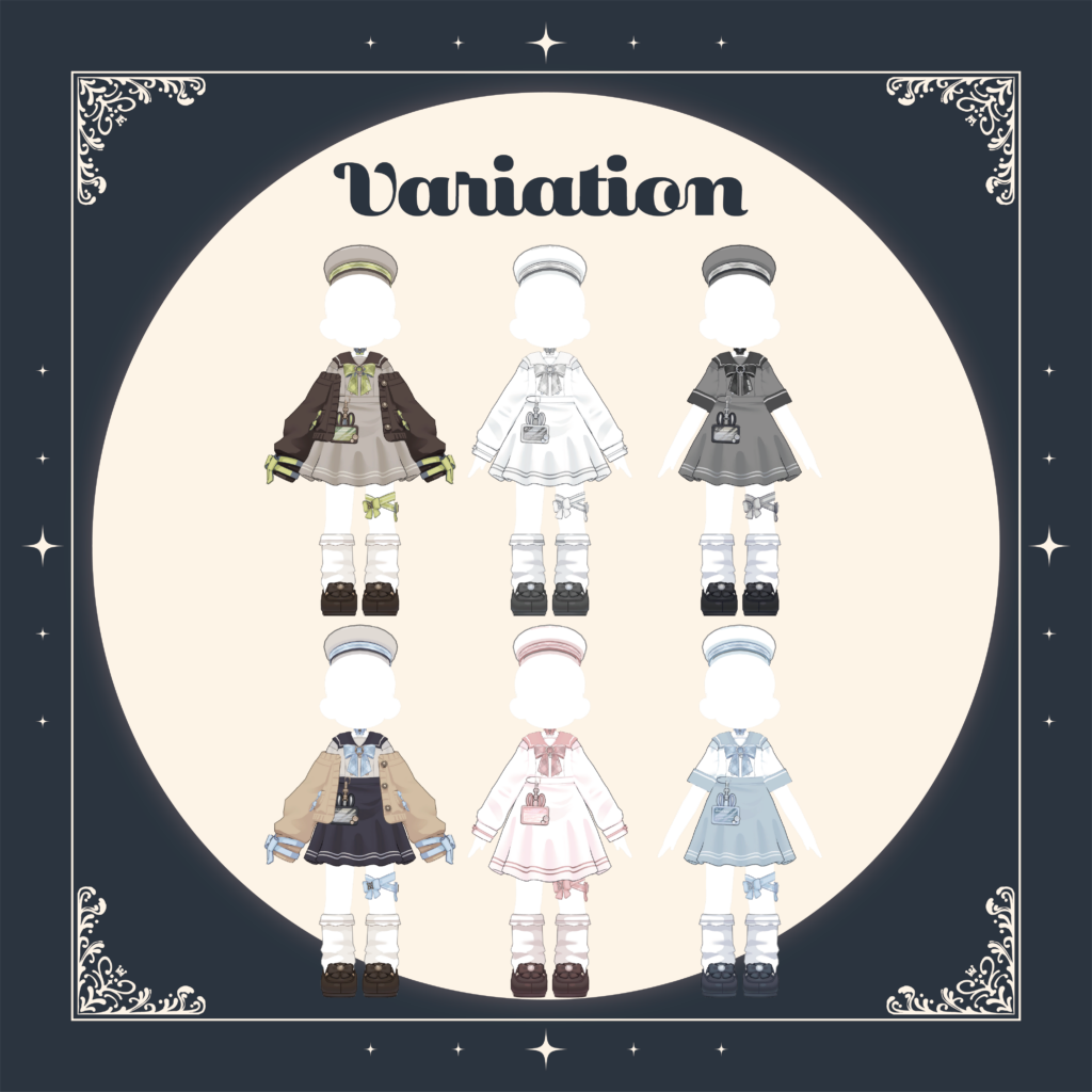 こちらも使いやすいパーツ分けが魅力的。ΔrtemisSailor – grace -の魅力であるカーディガンや帽子などはそのままに、違いとして、通常版ではクマのぬいぐるみだった部分が、こちらではうさぎ型の可愛らしい名札になっています。