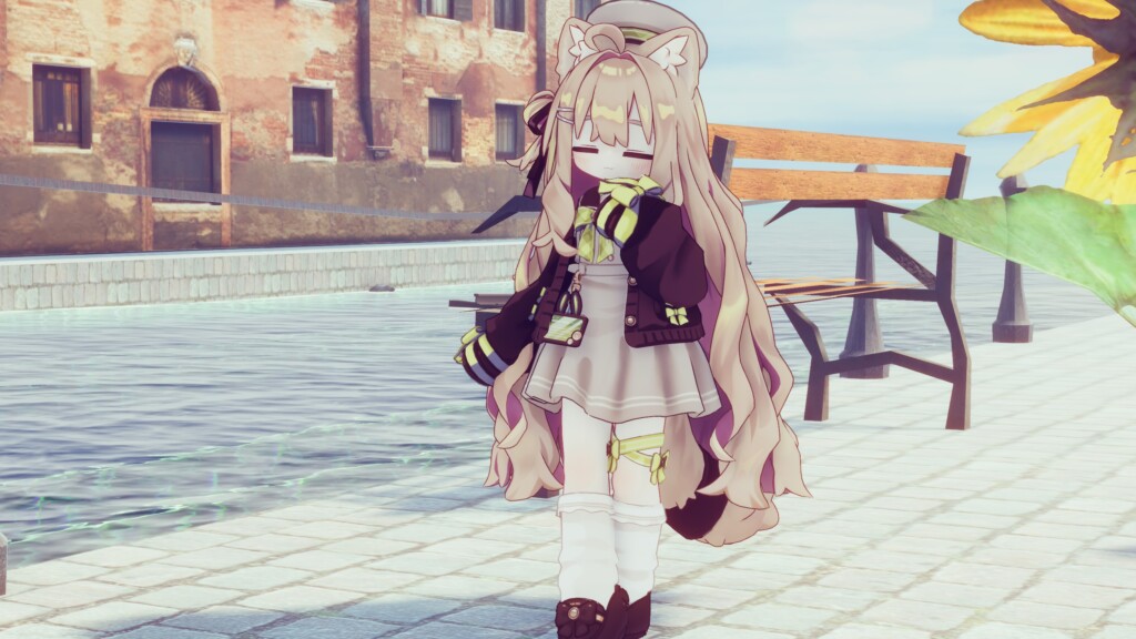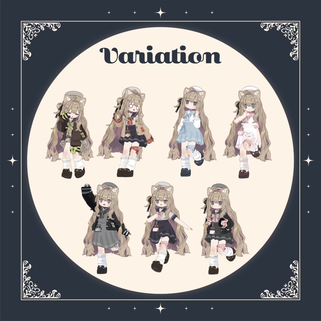 ちょこんとしたデフォルメの体型に、柔らかい輪郭線が映える見た目になっており、長い髪の上に優しく乗る帽子や靴下など、ロングヘアーでも隠れず見えるため、しっかり可愛さがアピールされています。