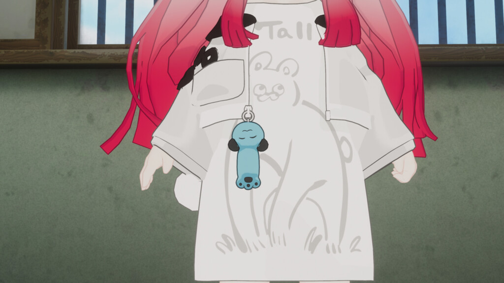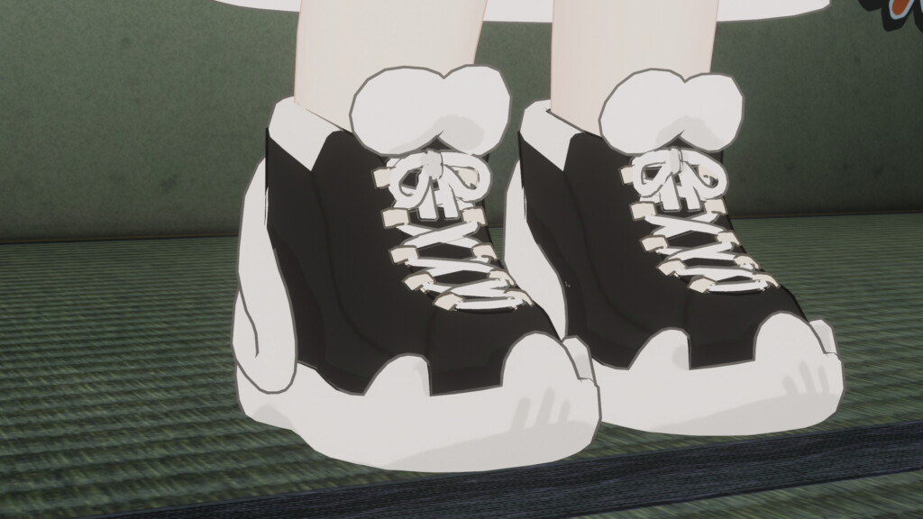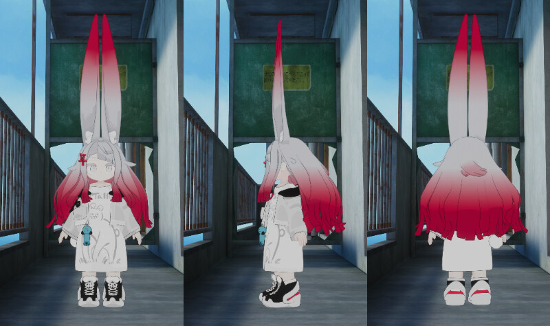 また細部まで見ると、過ごしやすそうなスニーカーと独特なデザインが書かれたTシャツが特徴的。 ファンタジーな衣装が多いVRChatの中では、ここまでシンプルなデフォルメ衣装デザインはかなり珍しいかもしれません。ちなみに書かれている獣は、クマでもウサギでもない謎の動物との事……?