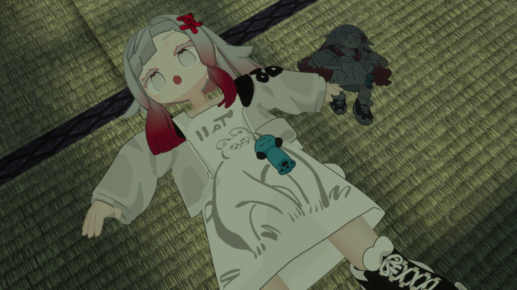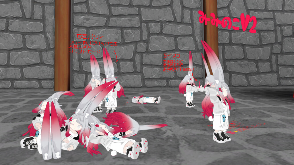 そう、この耳を抜いて倒れる姿、独特な表情と雰囲気がなんとなく無常観を感じさせてきます。耳は設定によって、他人に抜かれるほかに自分で抜くことも可能です。 ちなみに、この状態から両手をパーにすることで自分で起き上がることも可能です。