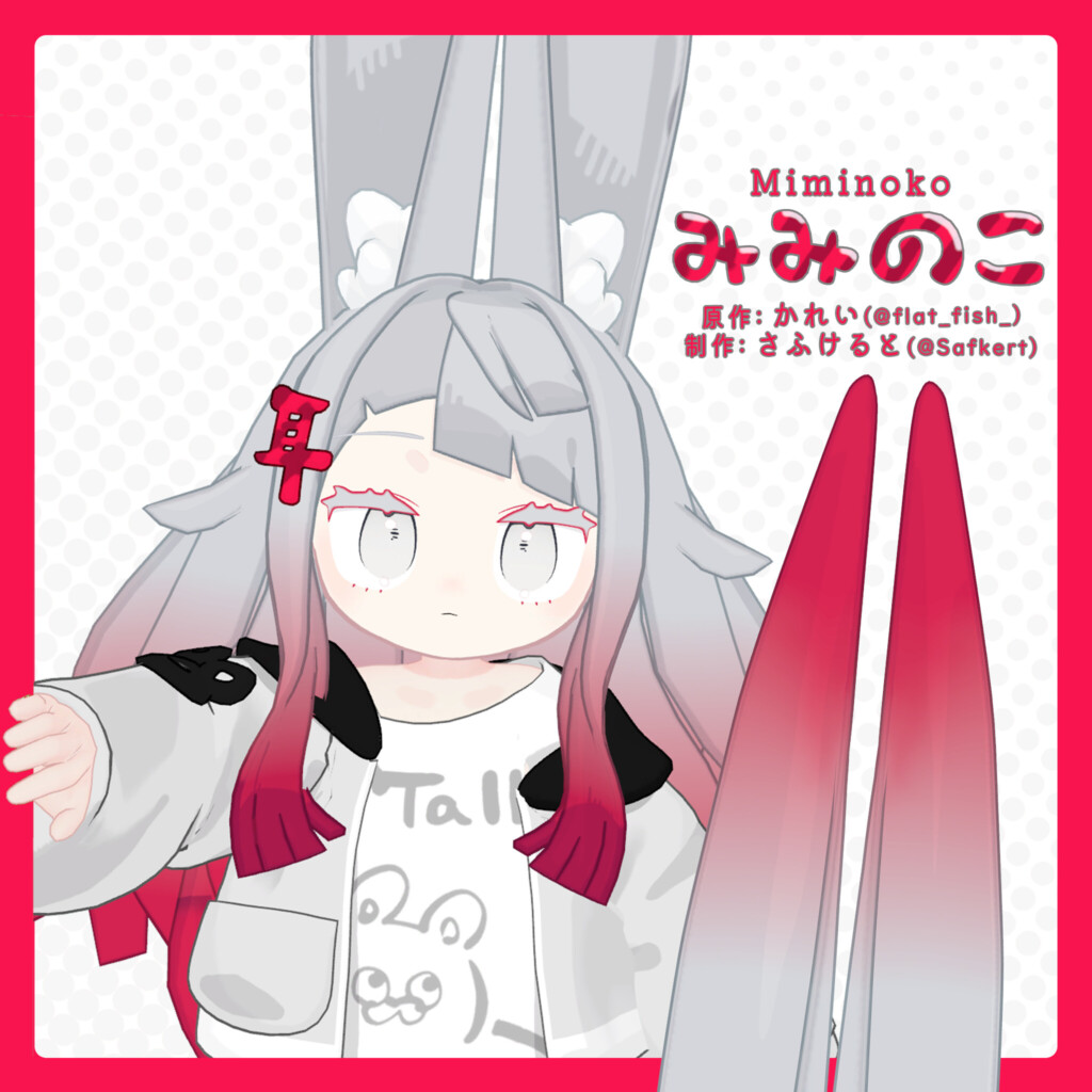 『みみのこ』は白と赤が印象的なデフォルメアバターで、作者・さふけるとさんでさえ「見慣れないほど長い耳」を持っています。体と同じほどのサイズがある巨大な耳のおかげで、他のデフォルメアバターと比べても全体の存在感が大きいのが特徴です。