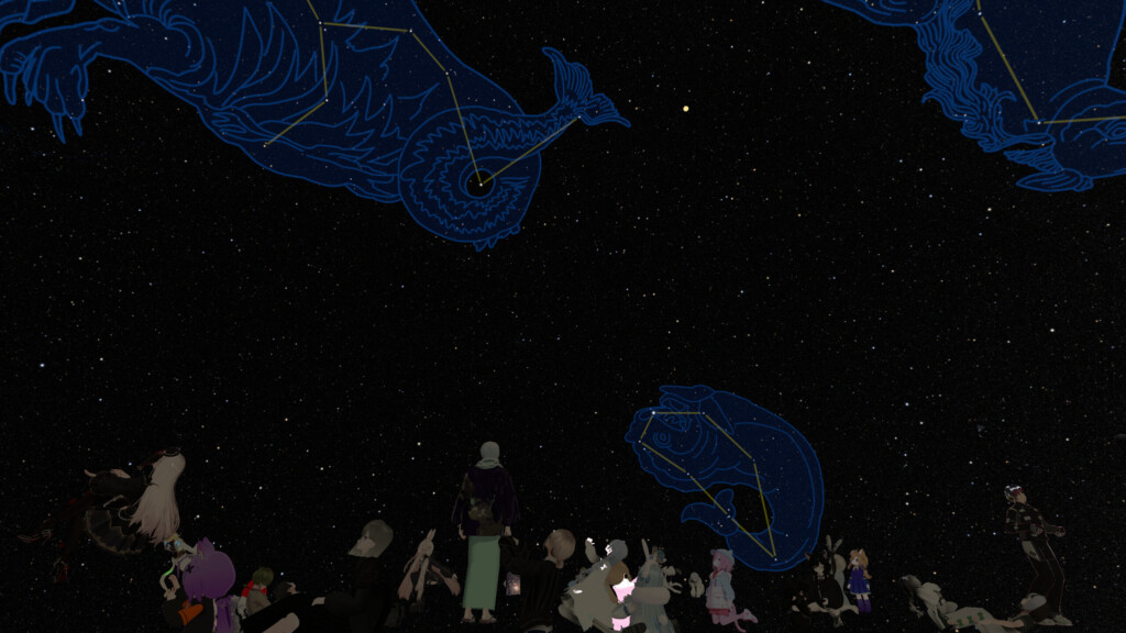 ワールド内は床も空もなく、すべてが星空の中なので非常に没入感が高く、プラネタリウムの中というよりはまるで宇宙に佇んでいるような錯覚を覚えました。