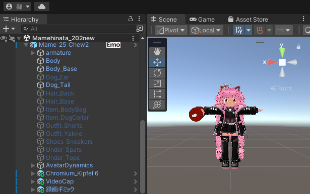 使うためにはアバターに入れる必要があるのですが、Modular Avatarを入れている場合は、導入はとっても簡単です。アバターのヒエラルキーにギミックのアセットを入れるだけ!