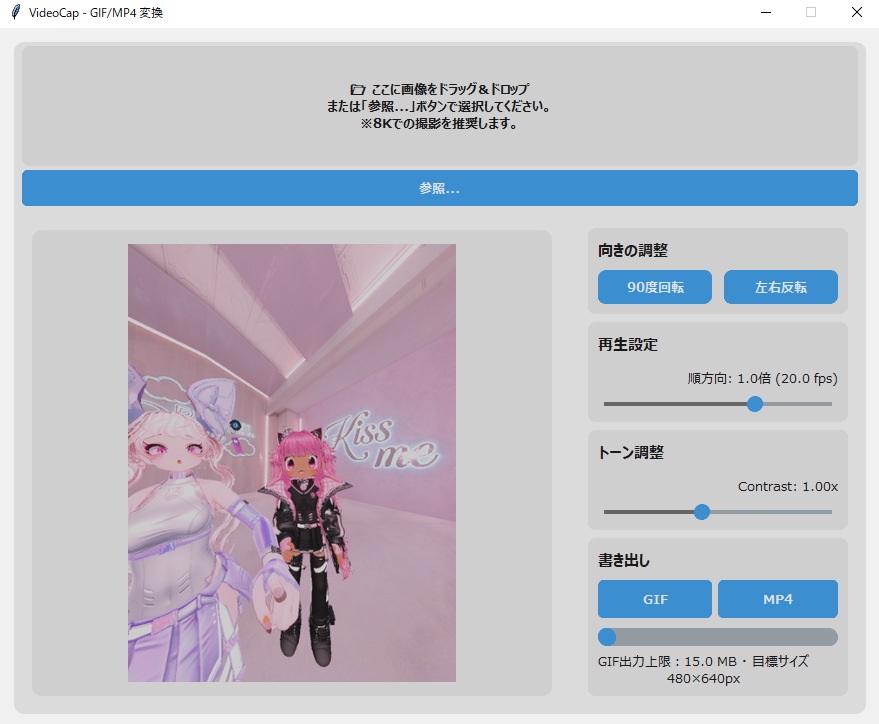 コマ撮り状態になった画像を保存します。この画像を、専用アプリケーションで読み込むと、mp4もしくはGIFに再構築してくれます!