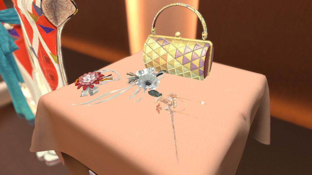 実際に着物を着る、となるとなかなか機会がない昨今。さらに着付けに時間がかかったり、動きなども難しい場合もありますが、バーチャルだと年齢や性別も関係なく、改変の知識があれば着せることができます。