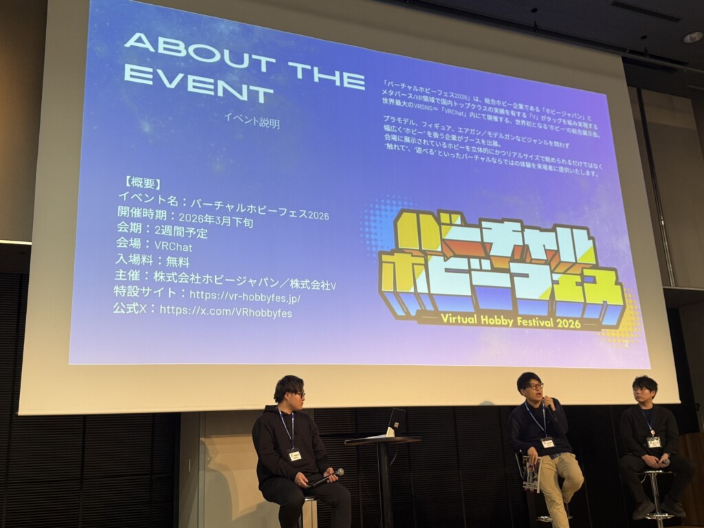 12月17日、東京都・秋葉原にてVRChat Inc.による”公式”のオフラインビジネスイベント「VRChat Japan Business Experience 2025(以下、JBE2025)」(主催:VRChat Inc.、企画・運営:株式会社V、GMOペパボ株式会社)が開催されました。そこで開かれたステージイベントで、ホビー関連の出版や販売を行う株式会社ホビージャパンとIPを活用した VRChat向けアバターの衣装を制作する株式会社ARROVA、その2社のパートナーとして組んだ株式会社Vが、「『IP×VRChat』の主戦場はどこへ向かう?」と題した講演を行いました。