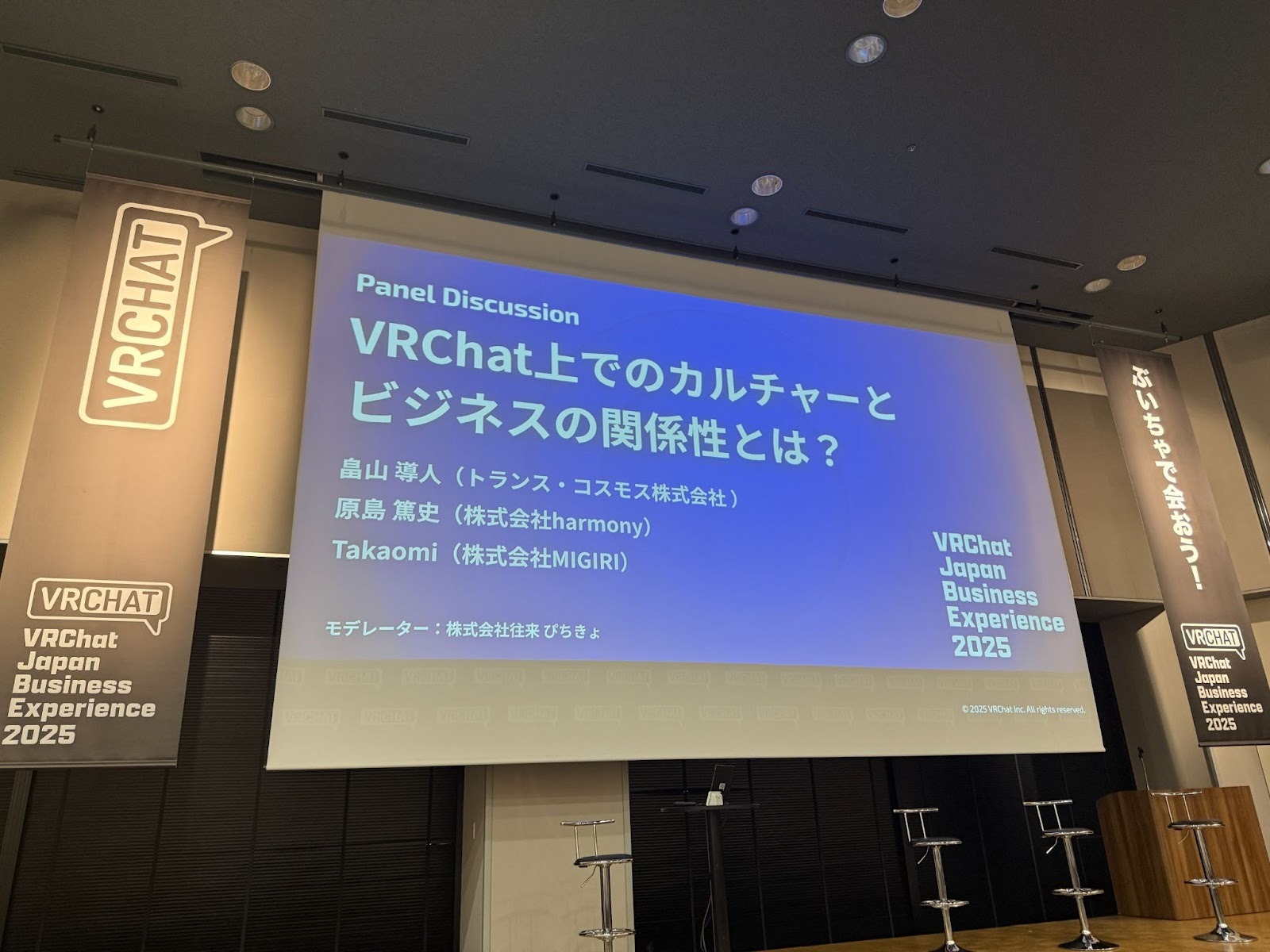 12月17日、東京都・秋葉原にてVRChat Inc.による”公式”のオフラインビジネスイベント「VRChat Japan Business Experience 2025(以下、JBE2025)」(主催:VRChat Inc.、企画・運営:株式会社V、GMOペパボ株式会社)が開催されました。そのステージイベントで、「VRChat上でのカルチャーとビジネスの関係性とは?」と題した講演が行われました。