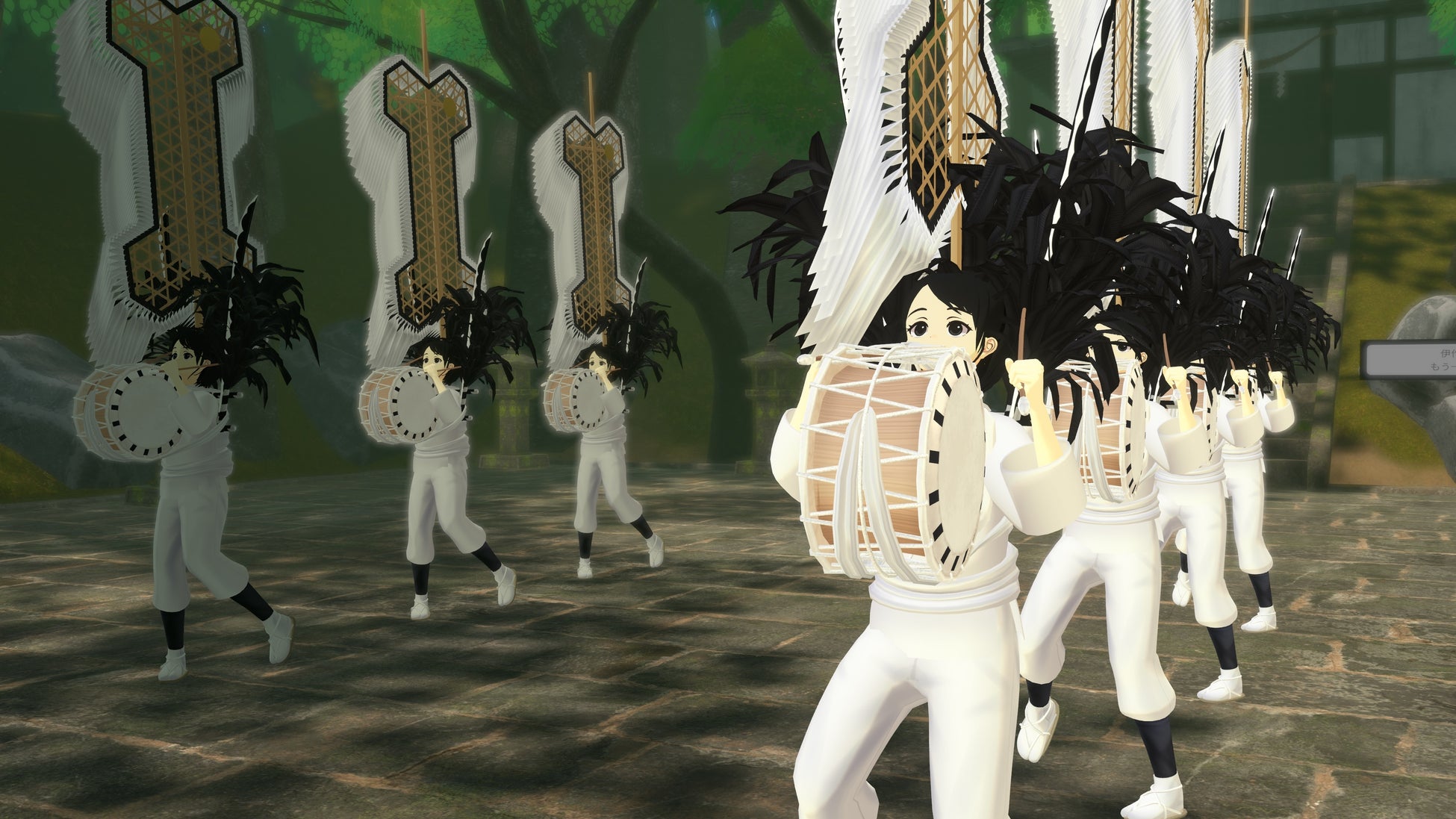特設ワールドでは、この伝統芸能の魅力をいつでも体験できるように、実際の踊りを収録し、独自の技法でバーチャル上にリアルに再現しています。
