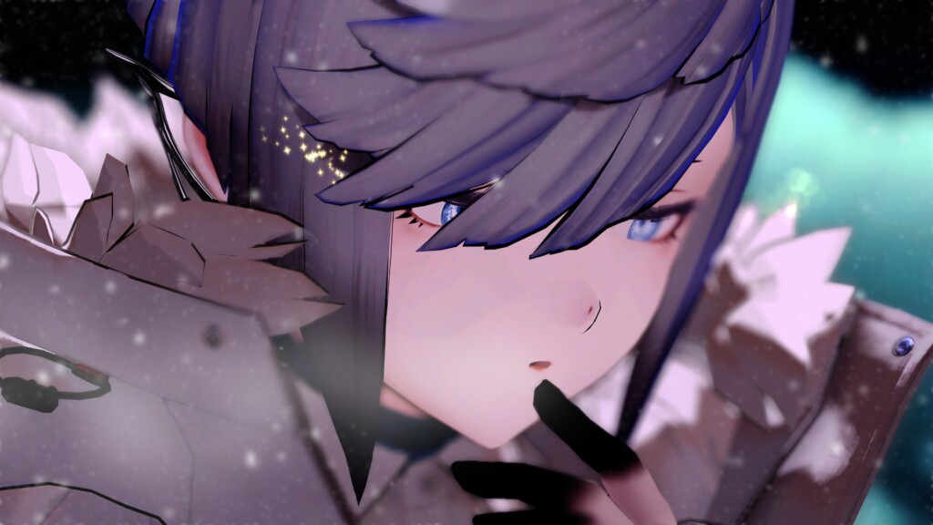 他、白い息、粉雪、星のパーティクル、全体の色調といったすべての要素が表情を引き立てる役割に徹しており、雑味のない構成がこのアバターの魅力を純度高く表現しています。