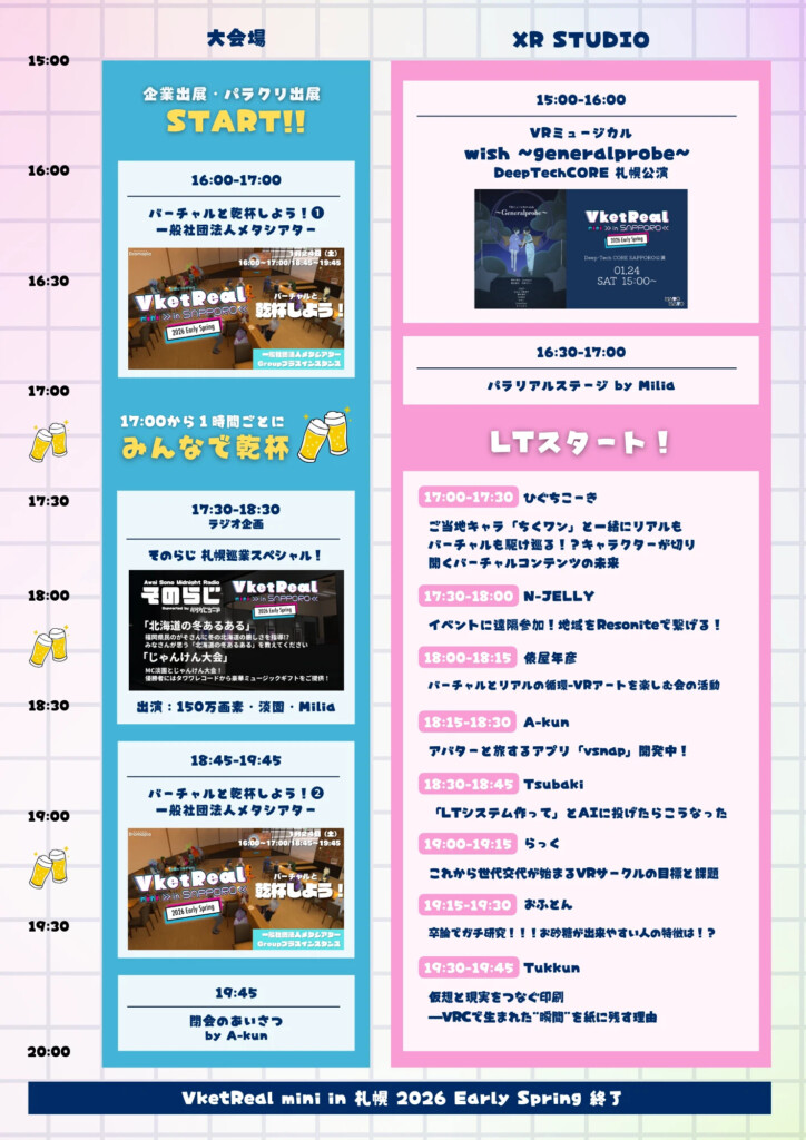 VketReal in 札幌 実行委員会は、「VketReal mini in 札幌 2026 Early Spring」を、2026年1月24日(土)にDeepTechCORE SAPPOROにて開催します。