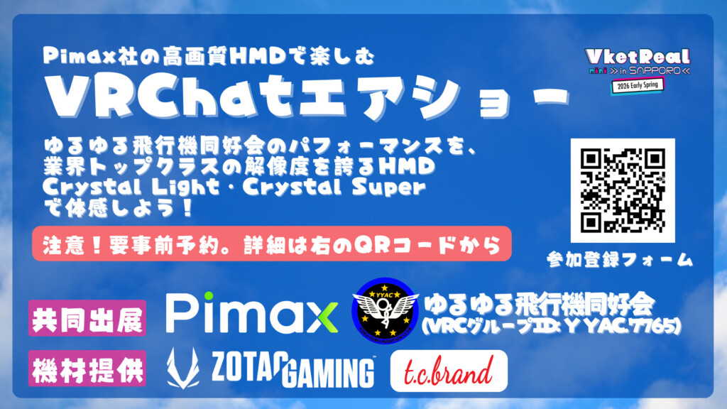 VKetRealは、株式会社HIKKYが主催する、バーチャルとリアルを融合させたXR体験型リアルイベント。夏と冬に開催され、2026年度の夏開催で、累計6回目となる、VRChatのお祭りとなります。VketReal mini in 札幌はそんな「VketReal」から派生したイベントです。