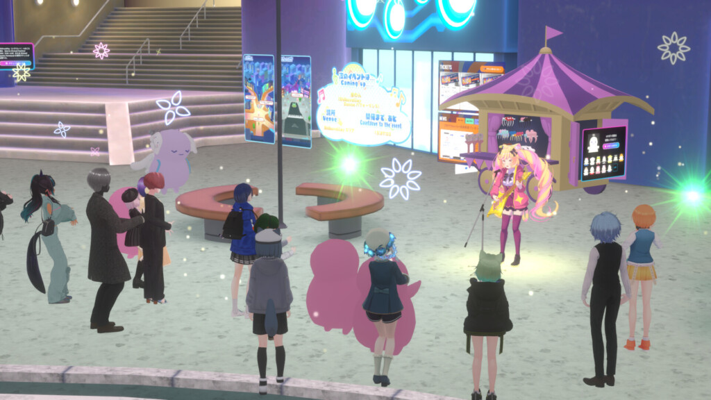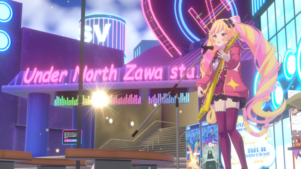 今回の先行体験では、マシマヒメコの路上ライブを体験できました。駅前で16時と23時になると上演が始まります。ワールド内でも上演時間は確認できるため、あらかじめチェックしておきましょう。