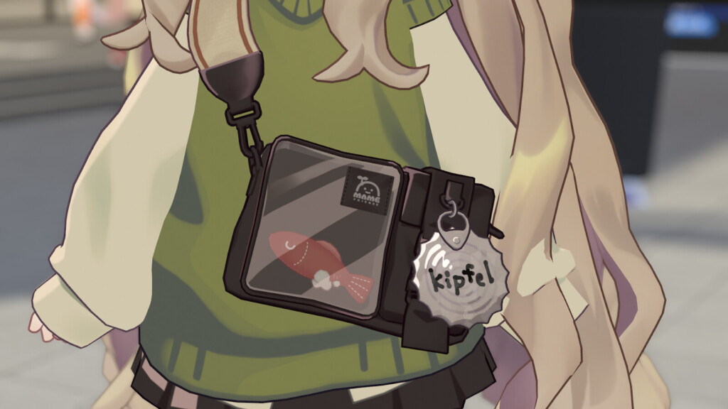 アバター改変の際には、このショルダーバックを使って各々の個性を魅せるユーザーも多いです。フタの名札には自分の名前やイラストを入れたり、バックの中にはぬいぐるみなどの小物や他のアバターを丸々入れて持ち運んでいるように見せている方もいるとか。