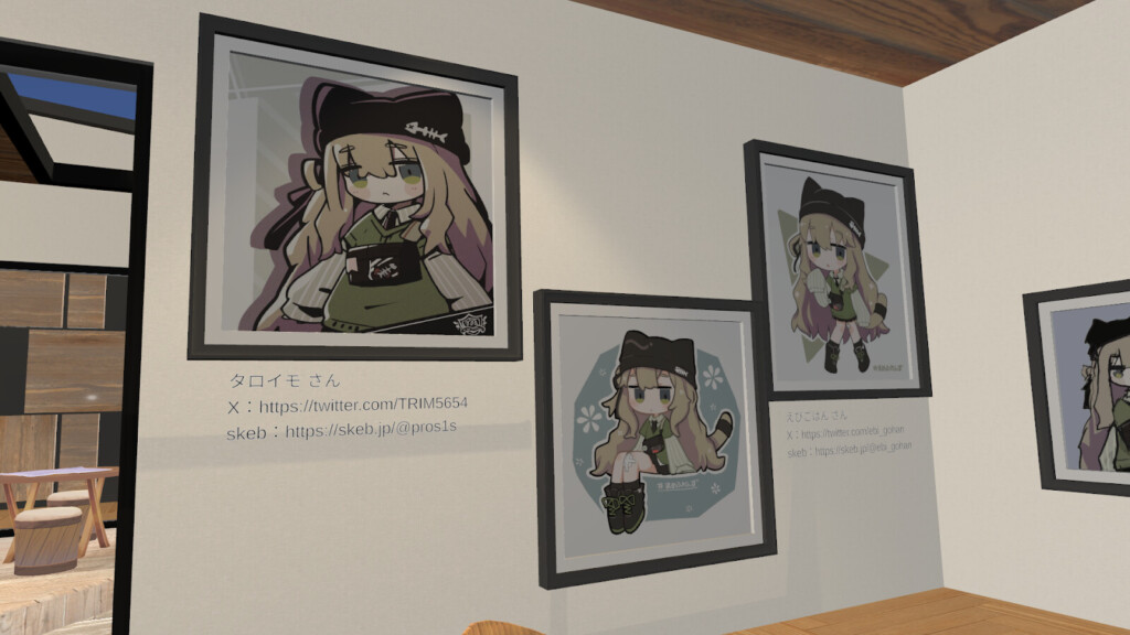 SNSでは、キプフェルの二次創作も多く見られます。キプフェル単体のイラストはもちろんのこと、VRChatの日常やあるあるをテーマとしたマンガや動画では、まめひなたと並んで描かれることも少なくありません。また、最近増えているVRChat関係のリアル即売会では、キプフェルのグッズを制作する方やコスプレをする方も多くいます。