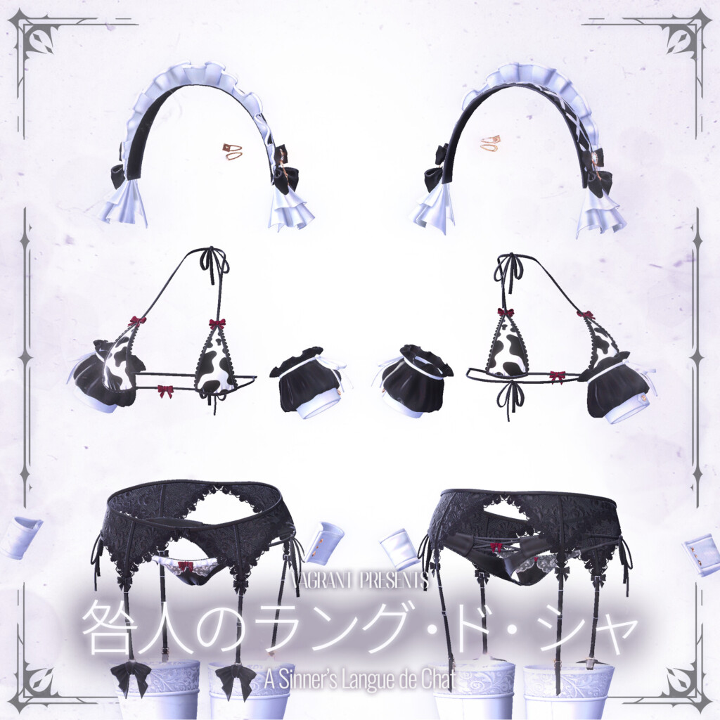 特筆すべきは、メイド服の下に隠された「下着」のデザイン。落ち着いた淑女という表の顔とのギャップは、まさに「罪深き」仕上がり。パーツ単体でVAGRANTの他衣装と組み合わせてみるのも、面白い試みかもしれません。