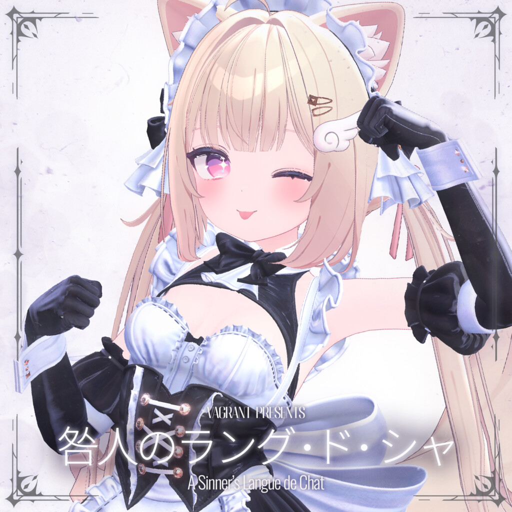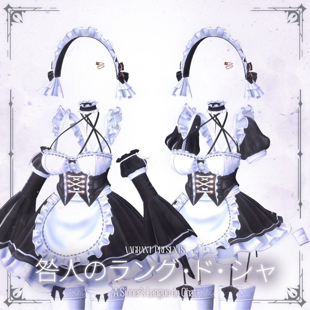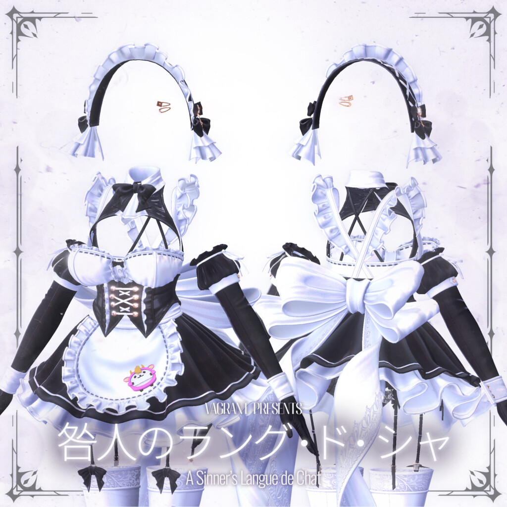 BOOTHショップ「VAGRANT」から1月30日にリリースされた新作衣装『咎人のラング・ド・シャ』。公式の紹介文にある通り、メイドという伝統的な形式を借りながらも、その実態は「甘美」と「罪深さ」が背中合わせに同居する、唯一無二の一着です。
