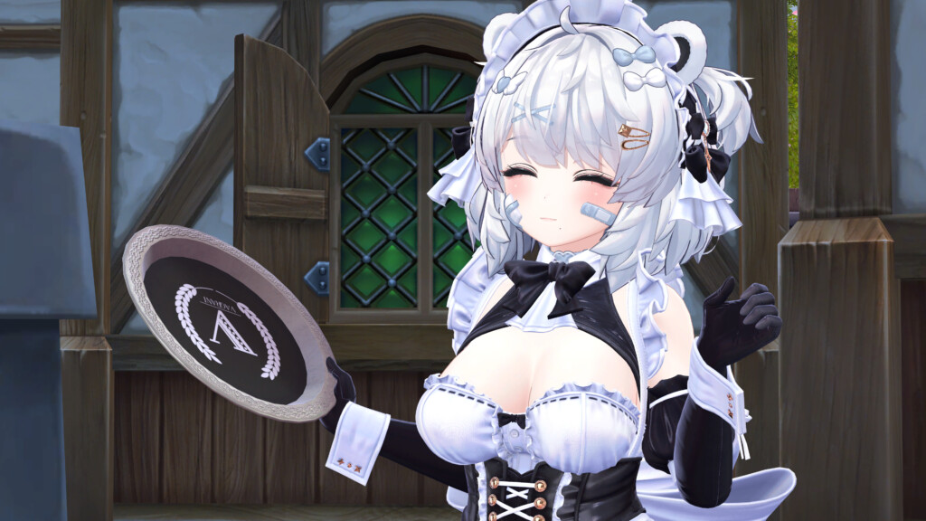 メイドといえば、主人のために何かを運び、給仕する姿を思い浮かべる方も多いでしょう。本衣装でも専用のトレイを取り出すことが可能です。そしてこのトレイ、実は驚くべきギミックが隠されています。
