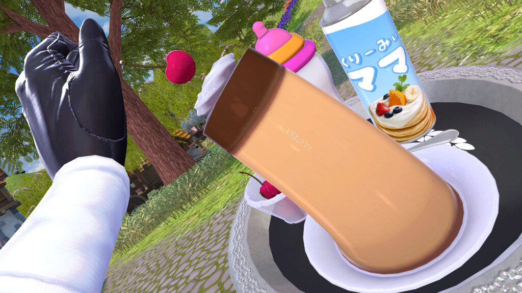 ちなみに、PhysBoneによってプリンを掴んで伸ばすことも可能。トレイの上でプルプルと震える質感は、何とも不思議な気分にさせられます。このプリン、一体何でできているのでしょうか……?