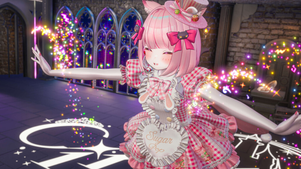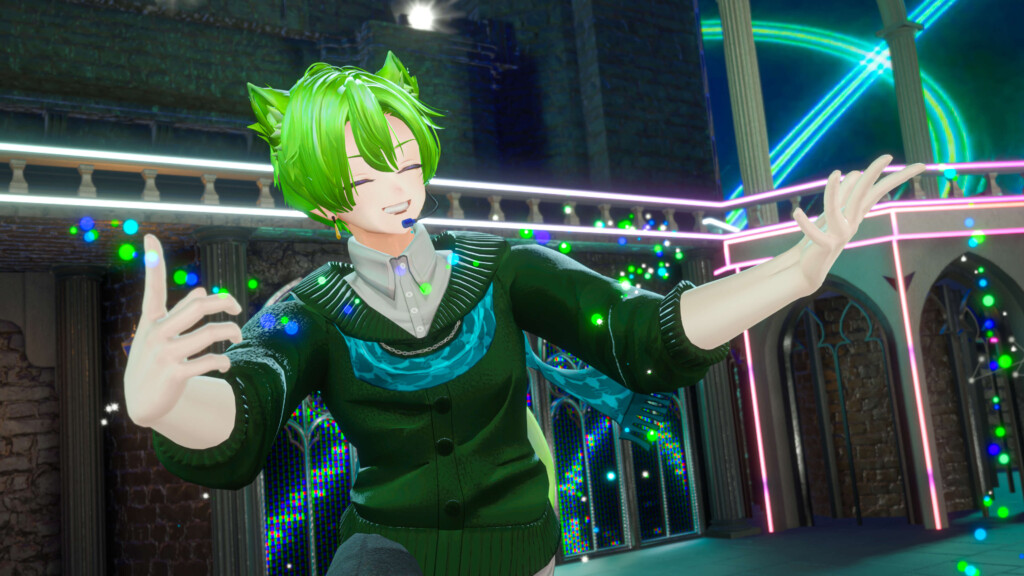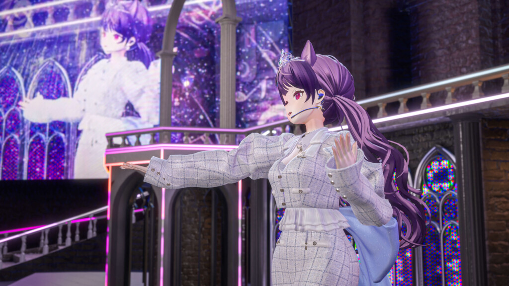 先陣を切ったのはL*auraさん。clusterでの活躍も多いシンガーの一人で、今回はオリジナル曲を2つ引っさげて参戦。ダンサブルでおしゃれな楽曲と、全身の動きが映える振り付けもあいまって、とってもノリノリなステージが繰り広げられました。