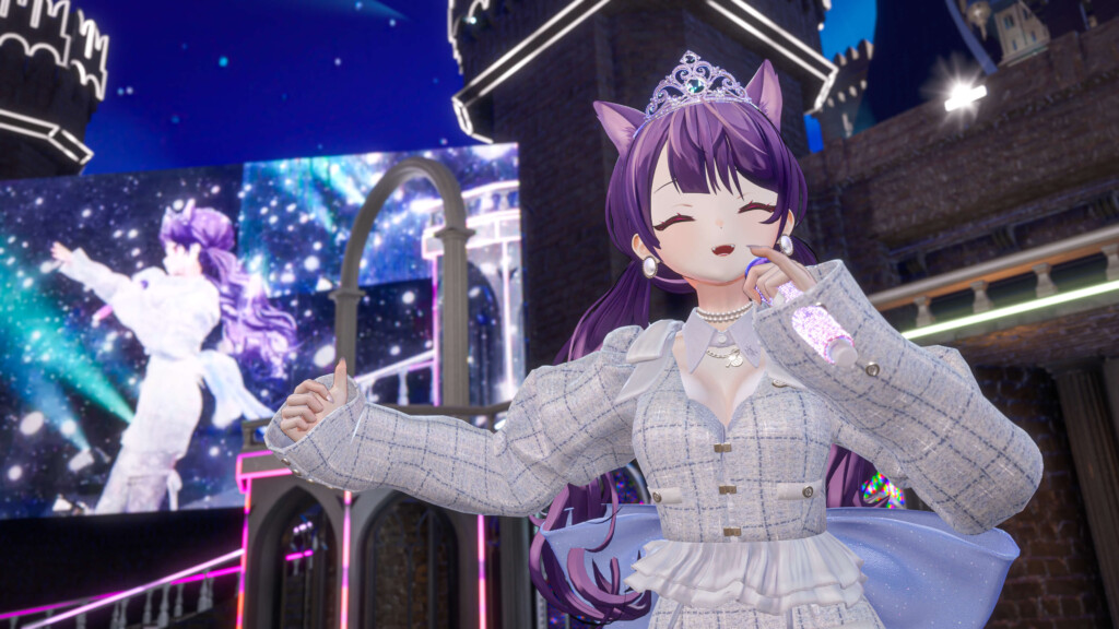 そして夕月ティアさん。サンリオ主催のコンテストで勝ち上がり、「Sanrio Vritual Festival 2025」のステージに立ったシンデレラガールです。まっすぐパワフルな歌声が響き渡るステージは、熱いMCと相まって、これぞアイドルと呼ぶべき輝きにあふれていました。