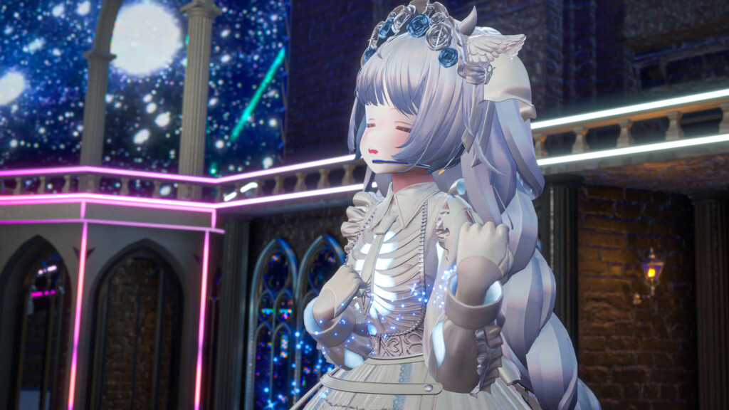 そして主催・冥界おいでさん、あるいはElfαさん。様々なVRChatアイドルが集まる場所を作り出した彼女もまた、VRChatアイドルの一人。幽霊のように消え入りそうな儚さの中に、決して折れない芯の強さが共存する歌声は唯一無二。ソロパートのトリを堂々とつとめてくれました。