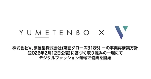 株式会社V(本社:東京都品川区、代表取締役兼CEO:藤原光汰、以下「V」)は、アパレルEC事業を展開する夢展望株式会社(本社:大阪府池田市、代表取締役社長:津田茂寿、以下「夢展望」)と、デジタルアセット領域における運営代行および販売委託に関する契約を締結いたしました。