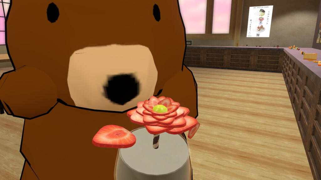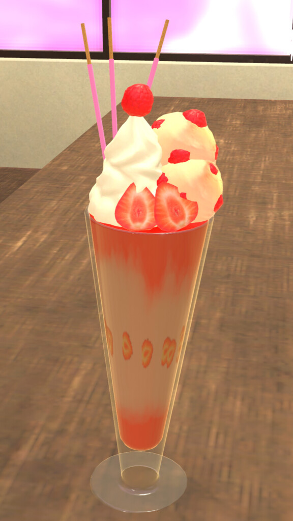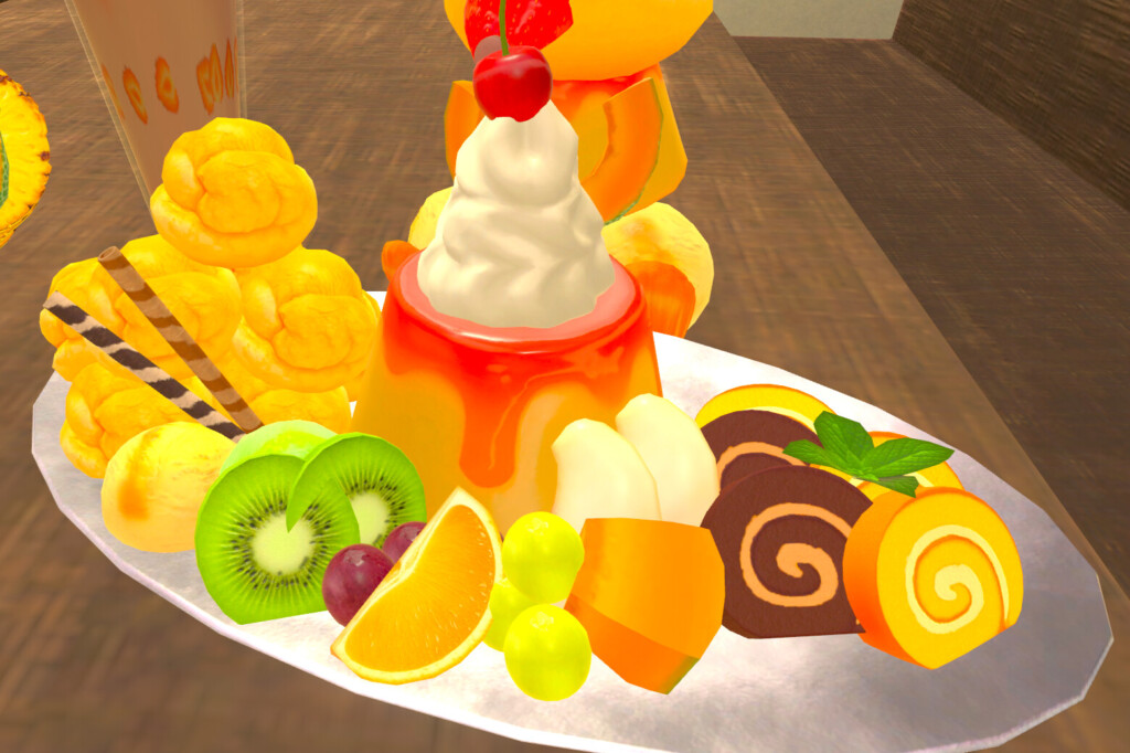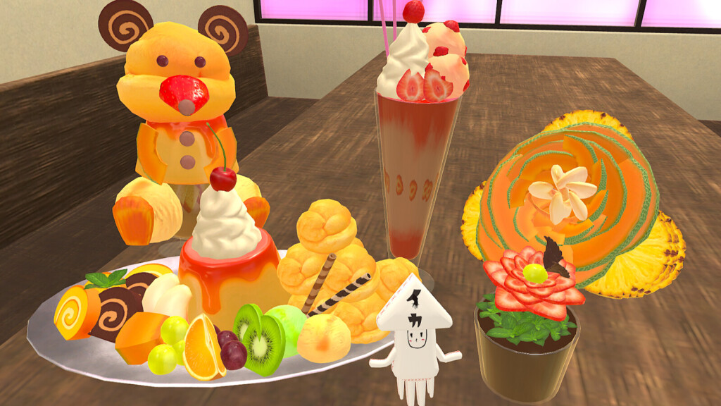 今回紹介するVRChatワールドは、パフェを自身の手で作る体験ができる場所になっている。制作者はメシテロモデラーでお馴染みのギミック職人イカめしさん。これまでにもワールドギミックが入ったアセットをたくさん作ってきた方です。