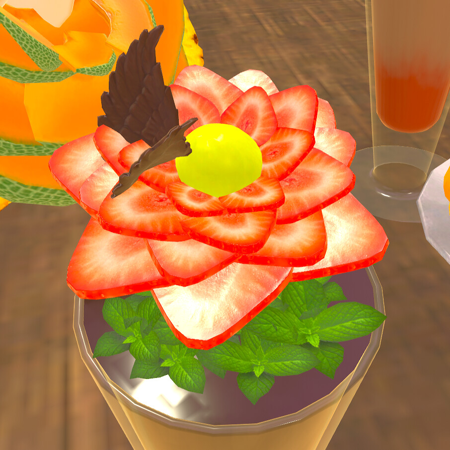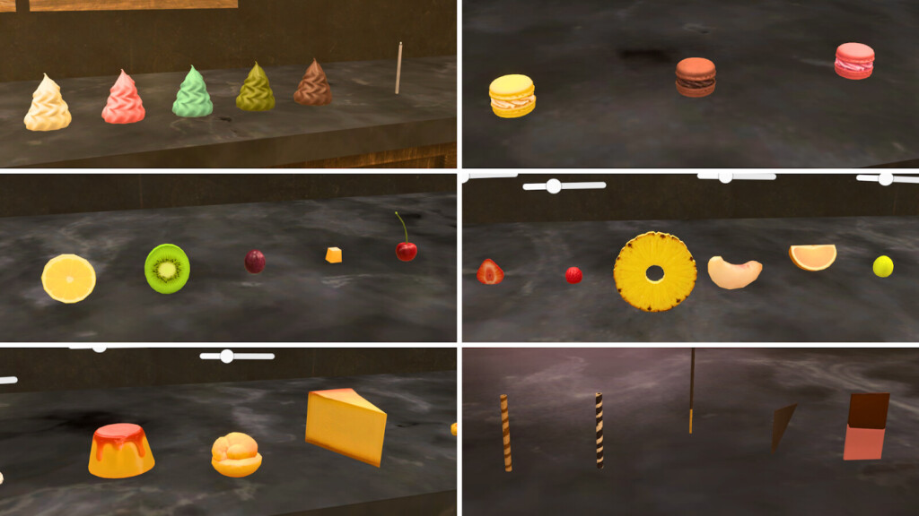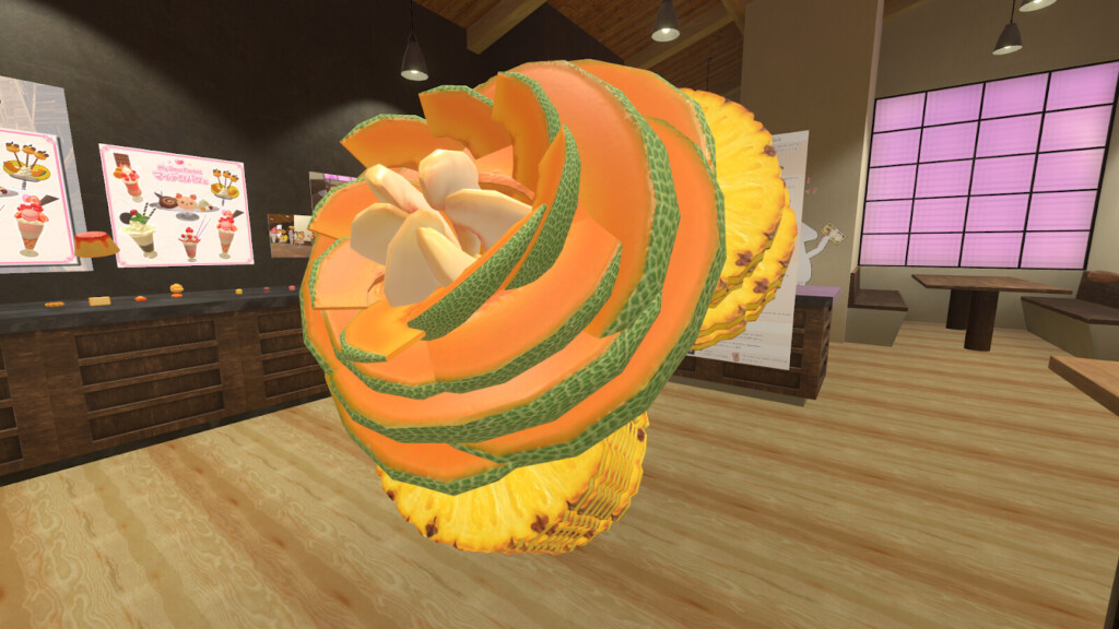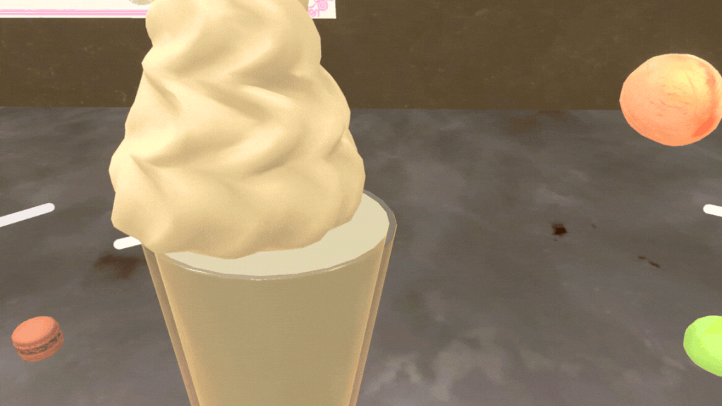 「パフェ職人への道」では、その名の通りパフェを作ることができます。好きなグラスを選び、アイスやフルーツを乗せればもう完成!立体的な組み立てることができるので、VRで両手が操作できる状態で遊ぶ方が作りやすそうです。