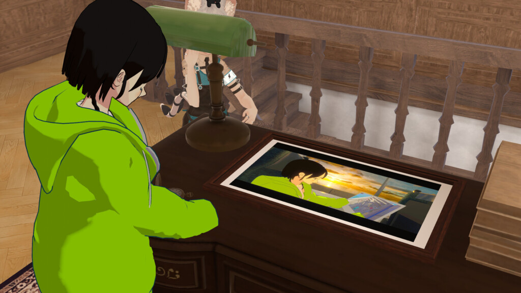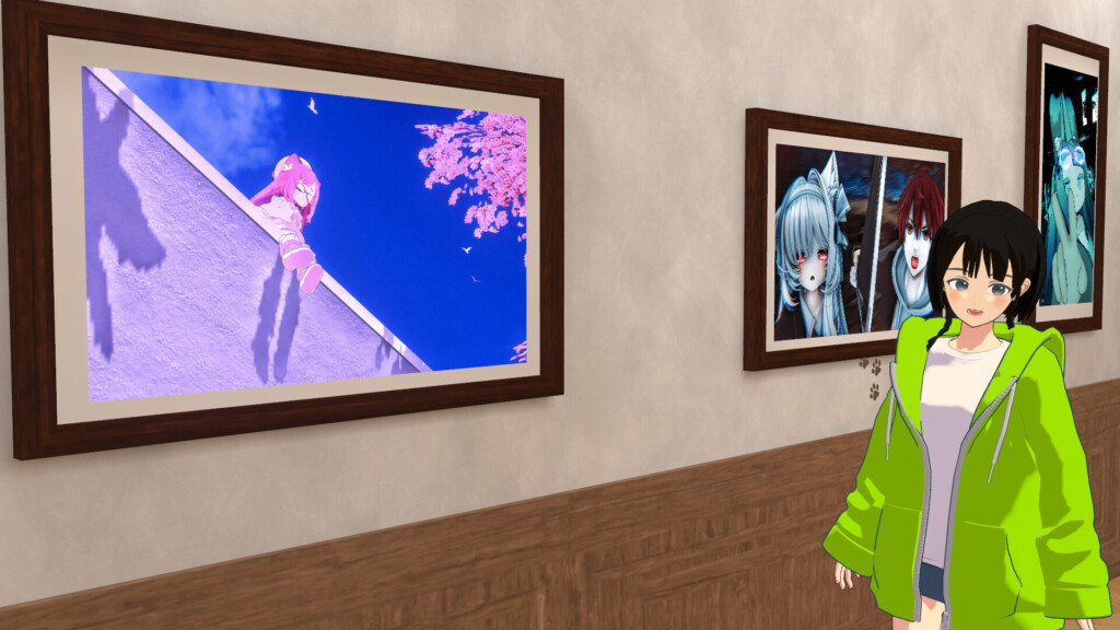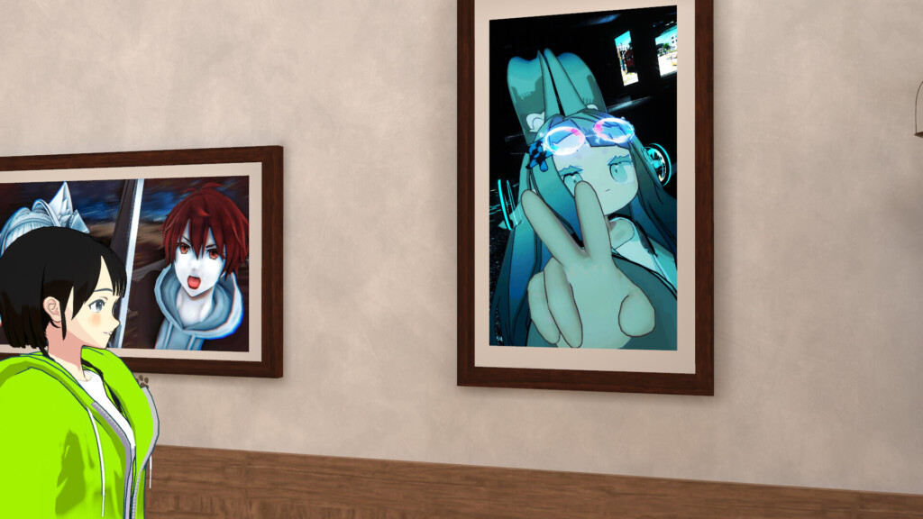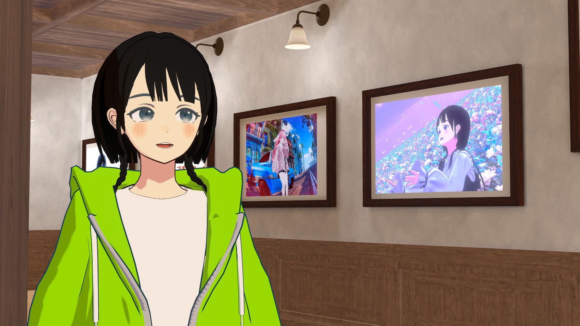 VRChatをはじめたときに『[JP] Tutorial world』に行ったのですが、そのときに展示されていたんですよ。一目惚れでしたね。最初は女性アバターはちょっと恥ずかしいなって思っていたのですが、1週間ぐらいで周りがみんな女の子だったので慣れました。